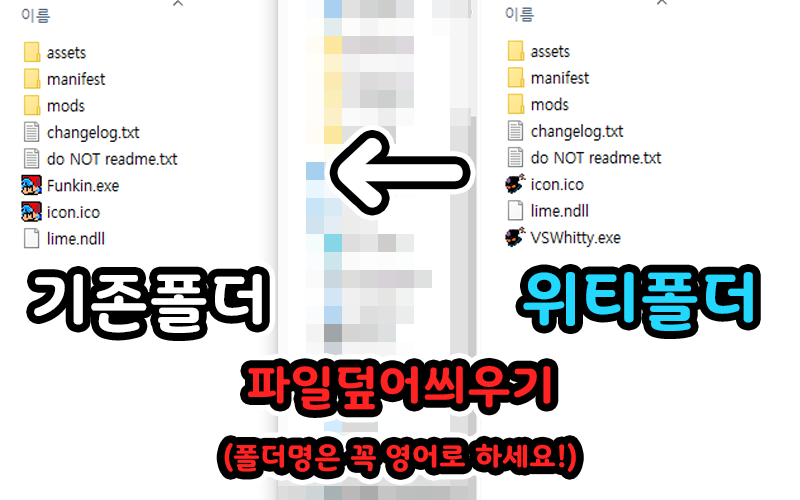 기존 프라이데이 나이트 펌킨의 폴더는 꼭 영어로 되어있는 곳에 설치가 되어있어야 합니다 . 또한 위티 폴더를 압축 풀고 기존폴더로 꼭 이동을해야하면 반대로 이동하면 안됩니다! 꼭 이렇게 순차적으로 옮겨주세요!
