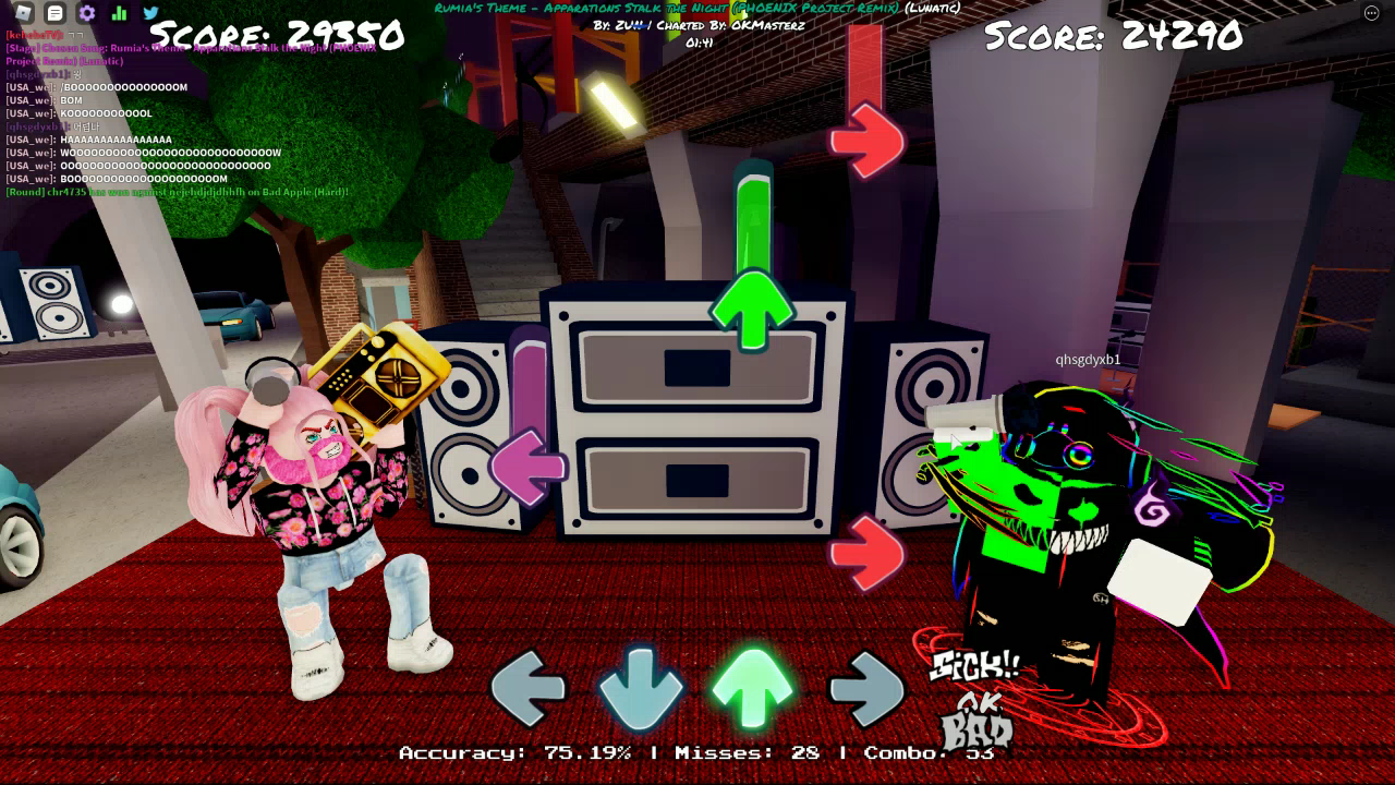 로블록스의 프나펌은 인디게임 프라이데이 나이트 펑킨 의 패러디 게임이라고 볼 수 있는 게임 중 하나입니다. 다만 실제로 멀티 플레이가 가능하다는 시점에선 어느정도 패러디를 넘어 섰다 라고 볼 수 있는 부분이기도 한데요? 살짝 저작권에 문제가 되기도하나 게임형식이 기본적으로 DDR의 형태를 가지고있어서 저작권 을 침해했다고 보기에는 애매한 부분이 있습니다. 하지만 나름 재밌게 플레이 가능하니 여러분들도 한번